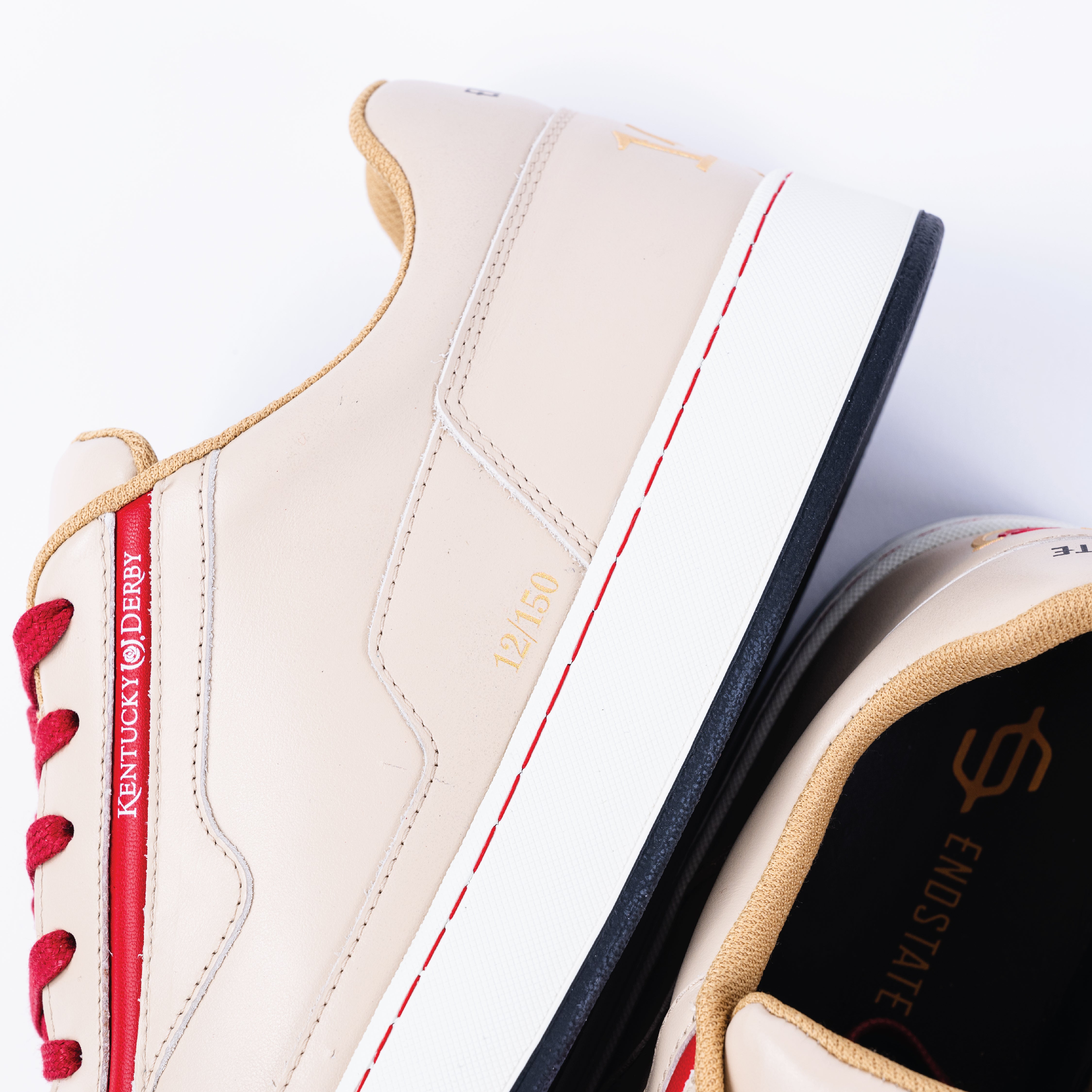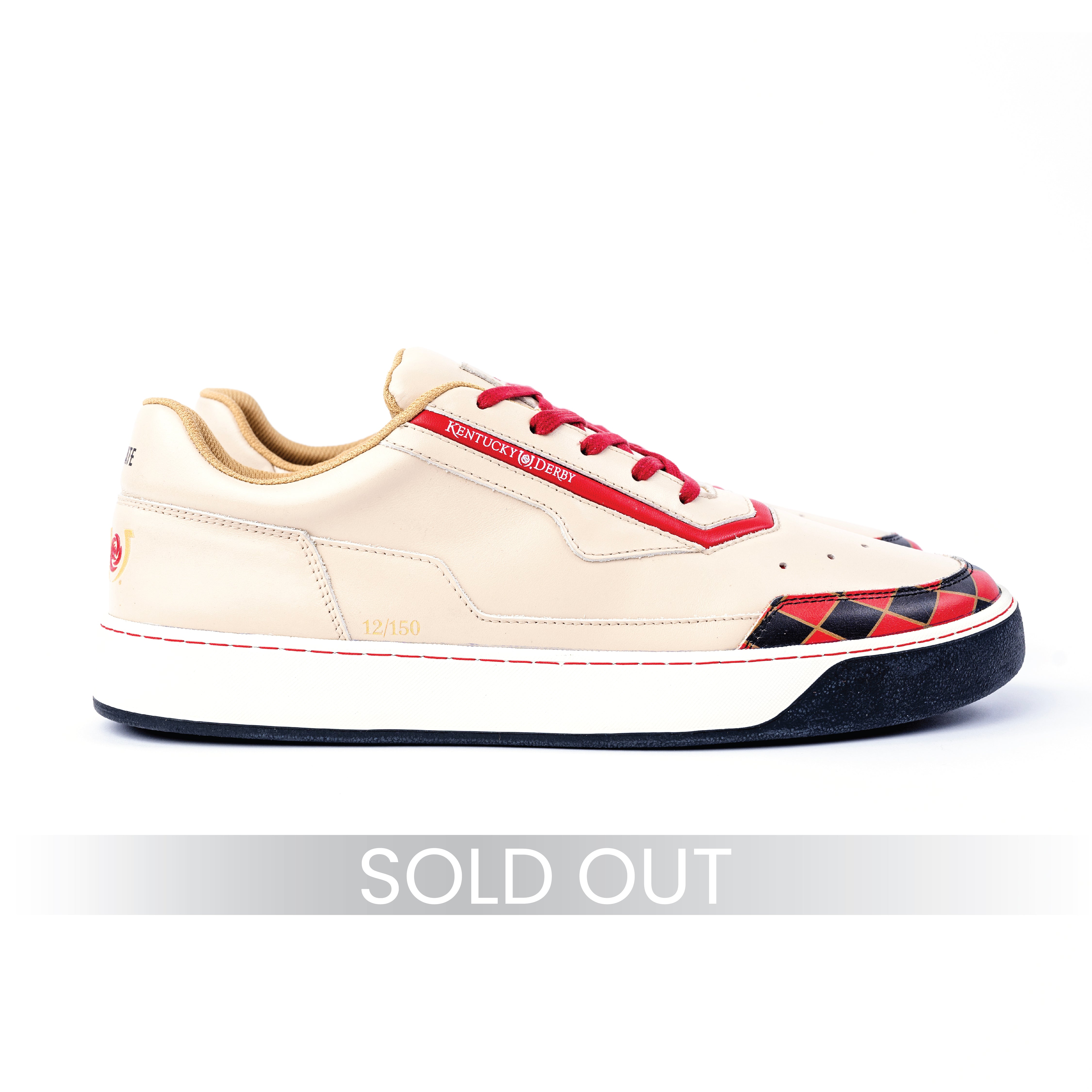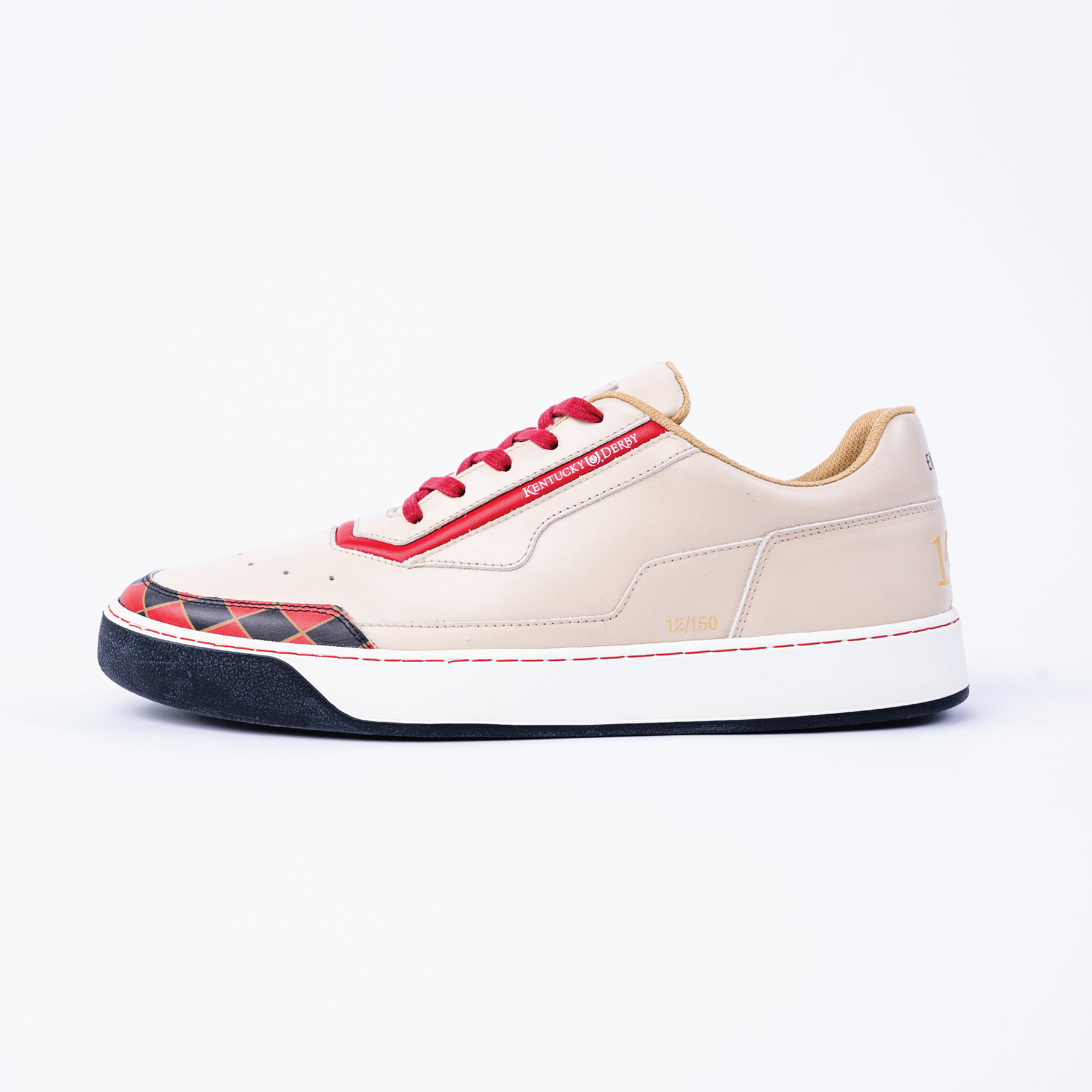 Crafted with meticulous attention to detail and inspired by the 150th running of the Kentucky Derby, our sneakers are made of fine Italian leather and feature a gold raised print of the 150th logo.